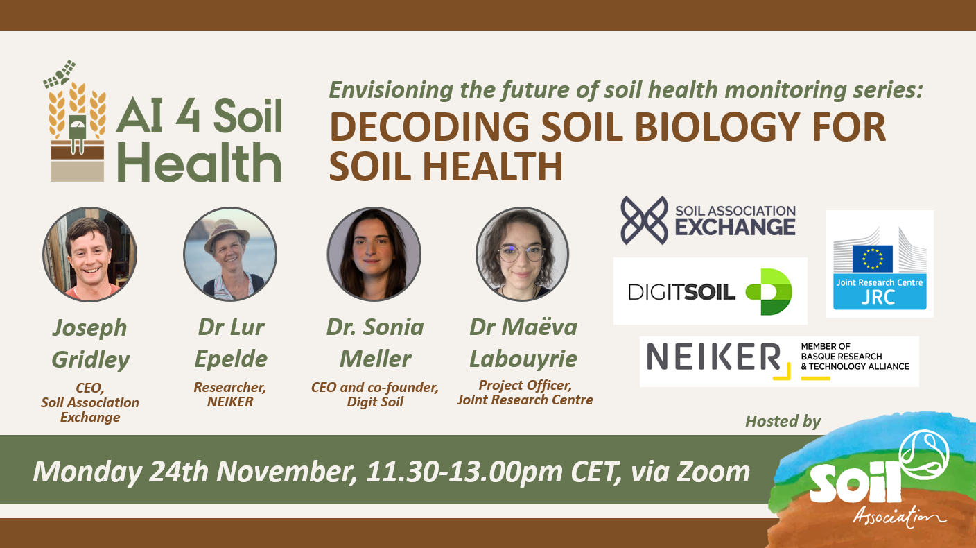November 24 @ 11h30 - 13h00 Decoding soil biology for soil health Join the fifth and final session in the AI 4 Soil Health...